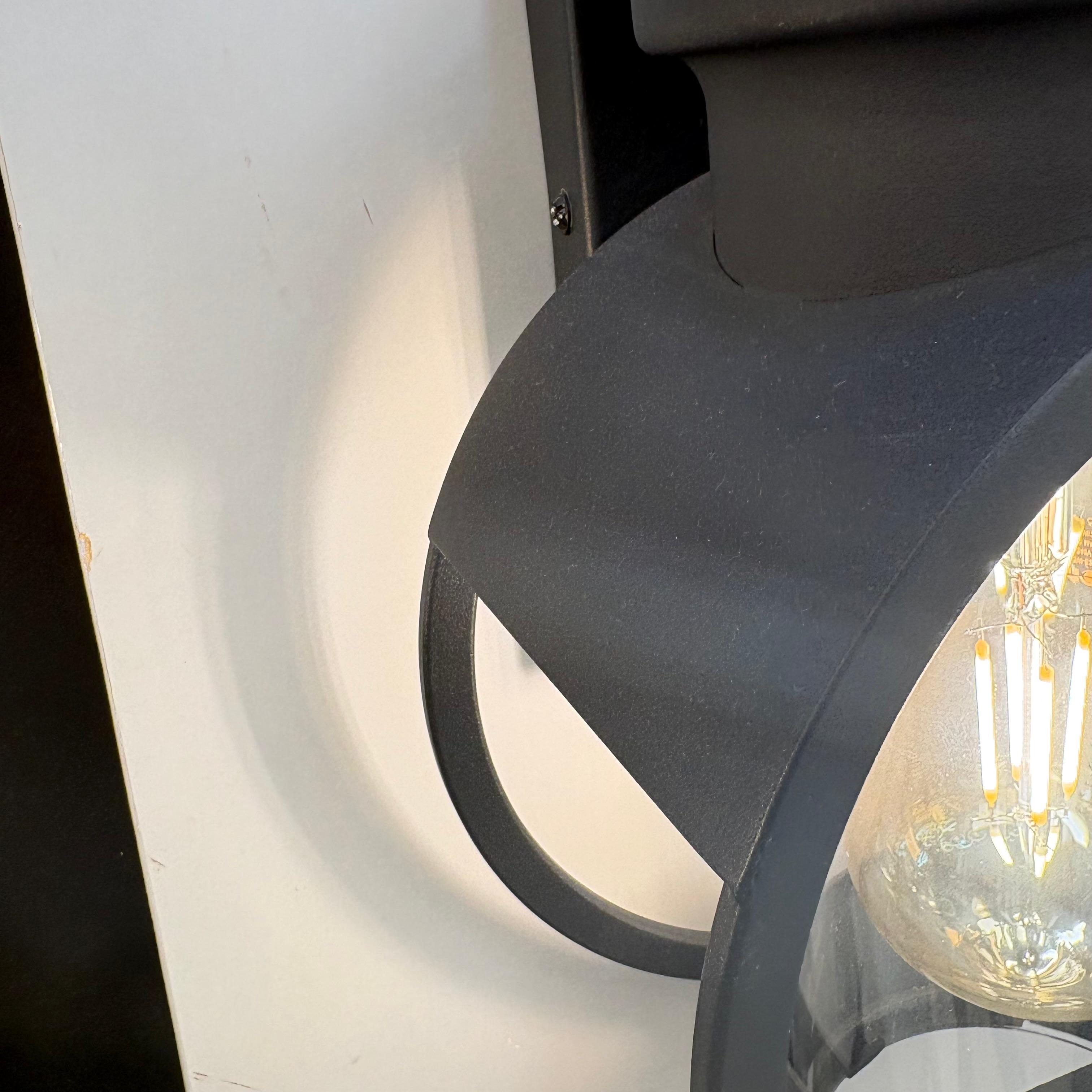(كشاف جداري خارجي دائري بإطار معدني أسود)