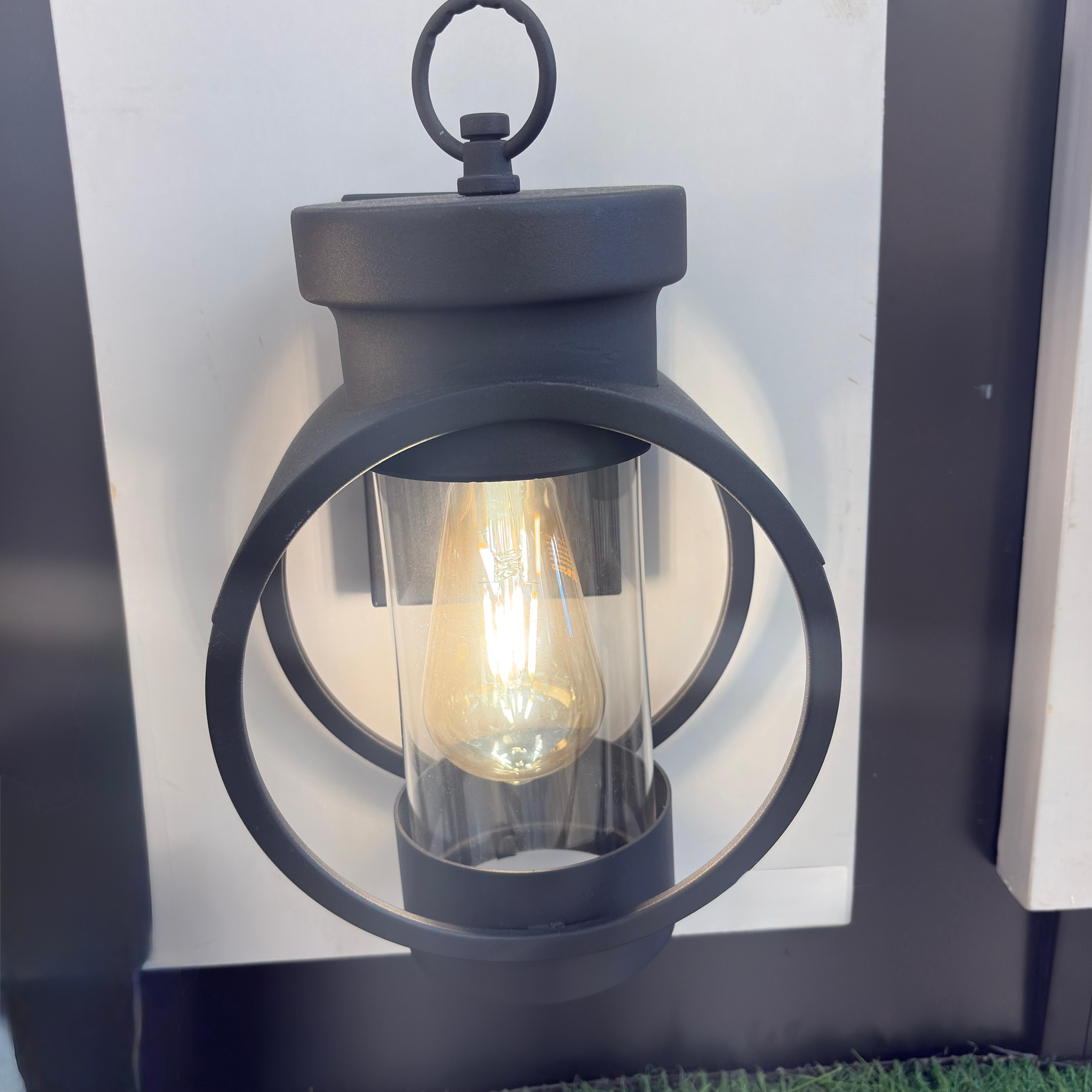 مصباح جداري فخم بتصميم دائري مميز مع حلقة معدنية خارجية تعطي شكل عصري وراقي، الإضاءة دافئة مناسبة للحدائق والممرات والجلسات الخارجية.