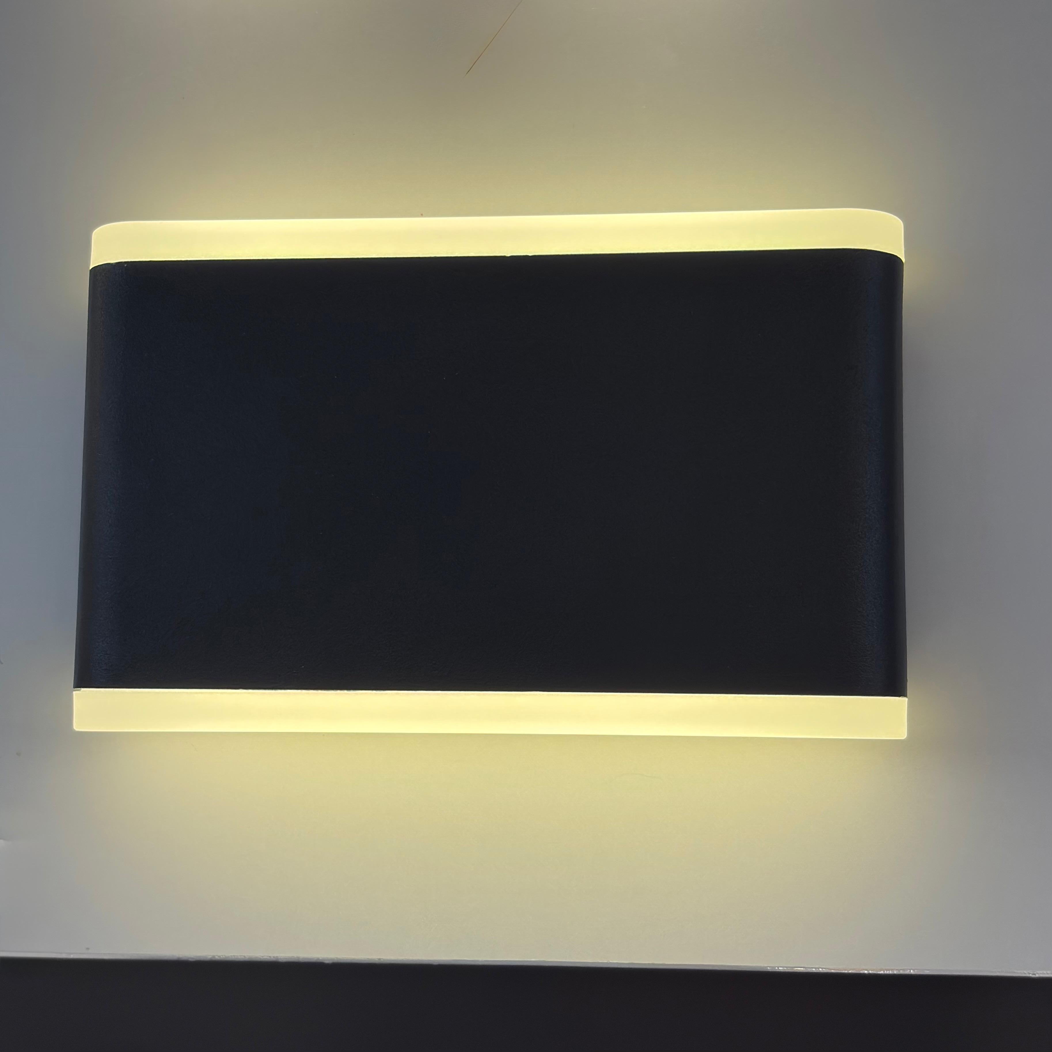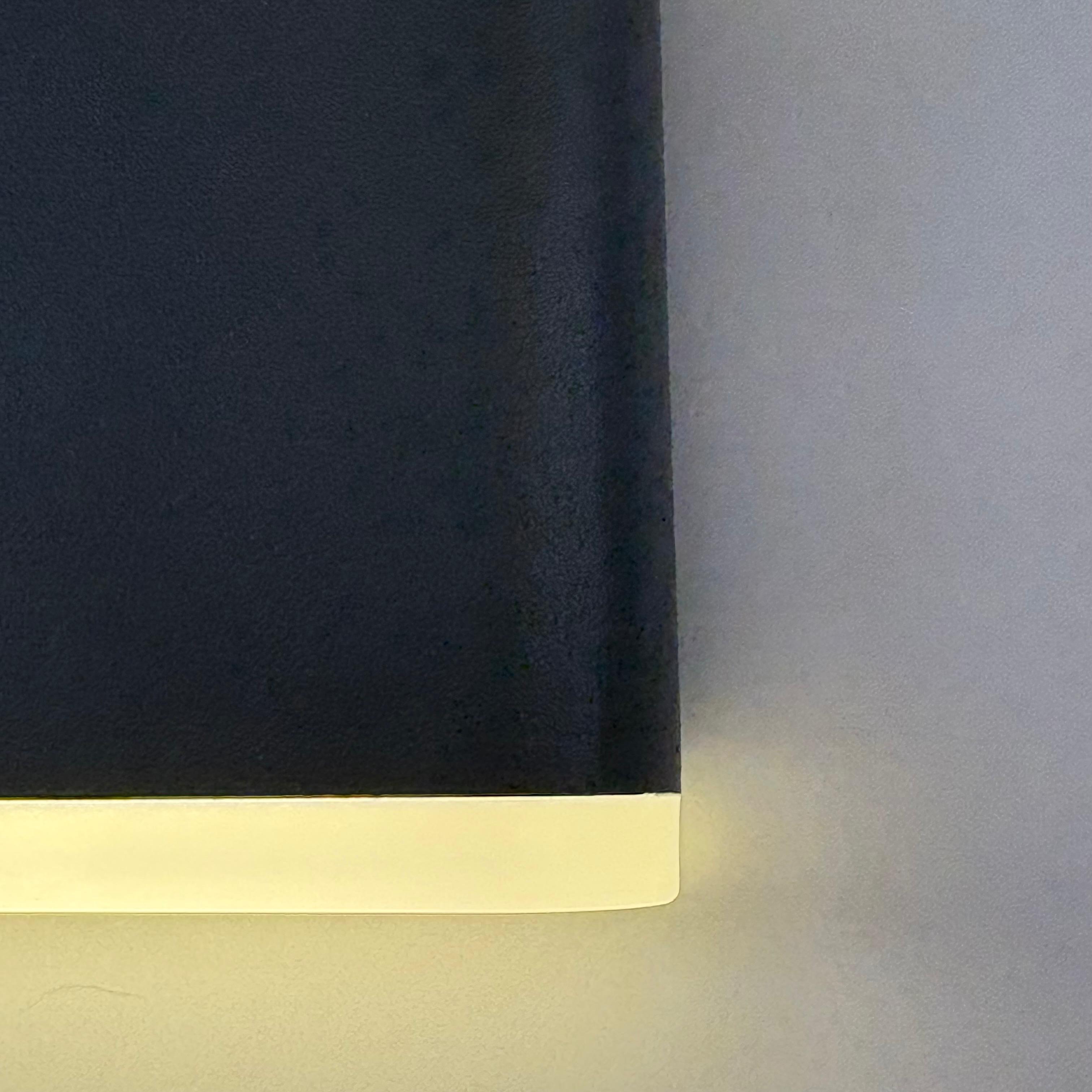 مصباح جداري أنيق بتصميم مستطيل مع لمسة كلاسيكية عصرية، مصنوع من معدن أسود وزجاج ضبابي. يعطي إضاءة دافئة ناعمة تناسب المداخل والممرات.